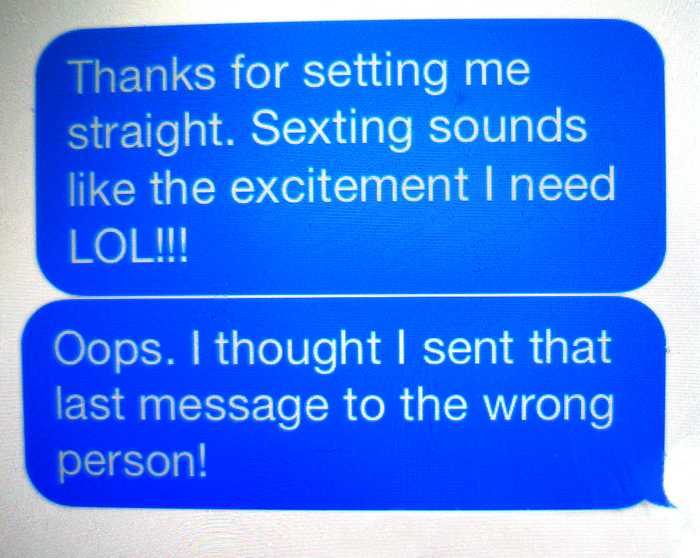Thanks for setting me straight. SEXTING sounds like the excitement I need LOL!!
