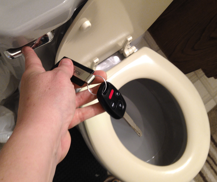 I was racing out of my house to meet a friend for lunch and just when I finished using the bathroom and was ready to leave, I accidentally dropped my car key.