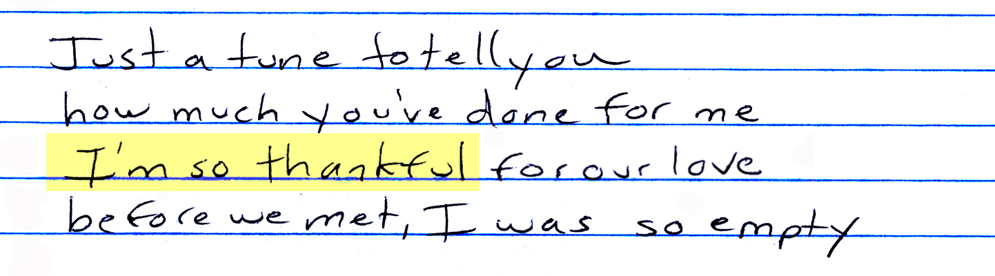 When I was looking to name this post, I went right to this song. The line of “I’m so thankful,” was one that I added to my song just last week. Perhaps the Thanksgiving holiday and my thankful attitude was dictating from my subconscious.
