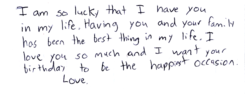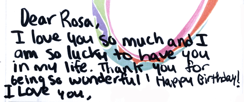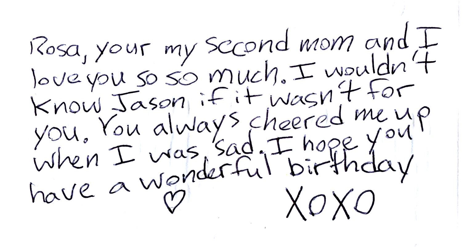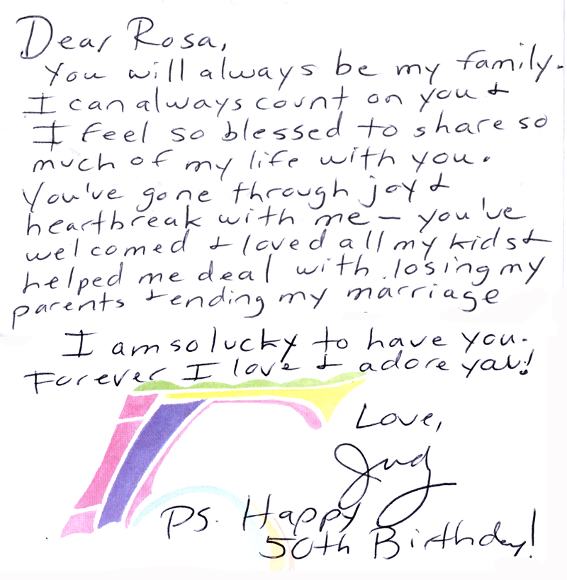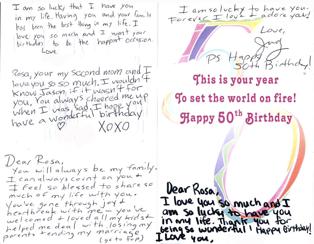 On the topic of being thankful, I will always be close to my former housekeeper, Rosa. Her concern and love for me is reciprocal and this week my children and I celebrated Rosa’s fiftieth birthday. I want to share a few more happy pictures and the sweet messages that my children and I wrote on her card.