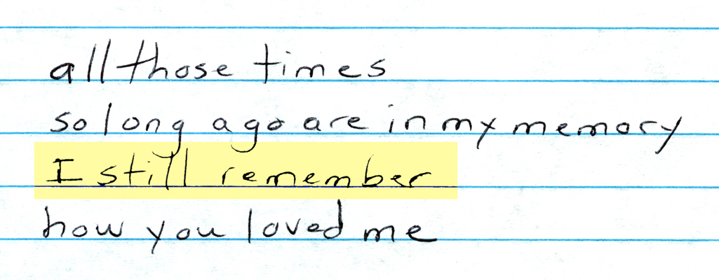 She loved the words of “I still remember,” even though there were so many things about her past that were painful to remember.