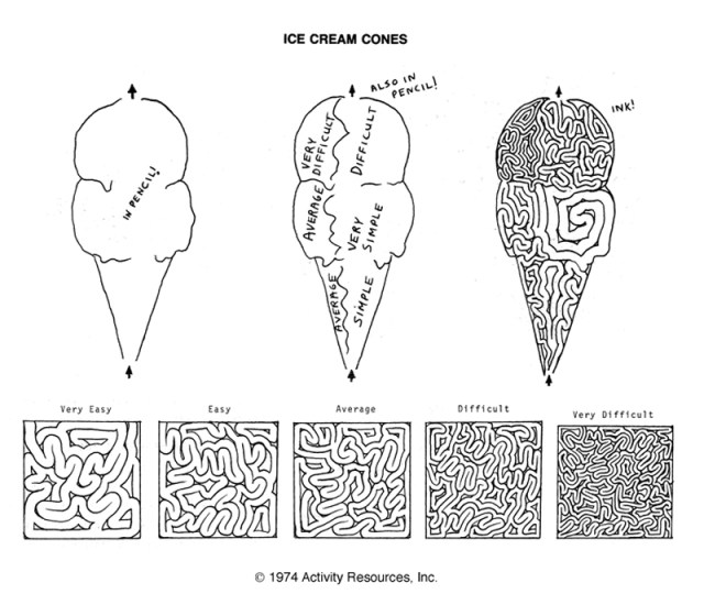 Because an educational company published my book, it was required to be instructive. Below is a page from my book with examples of creating maze tones by using wider and narrower paths.