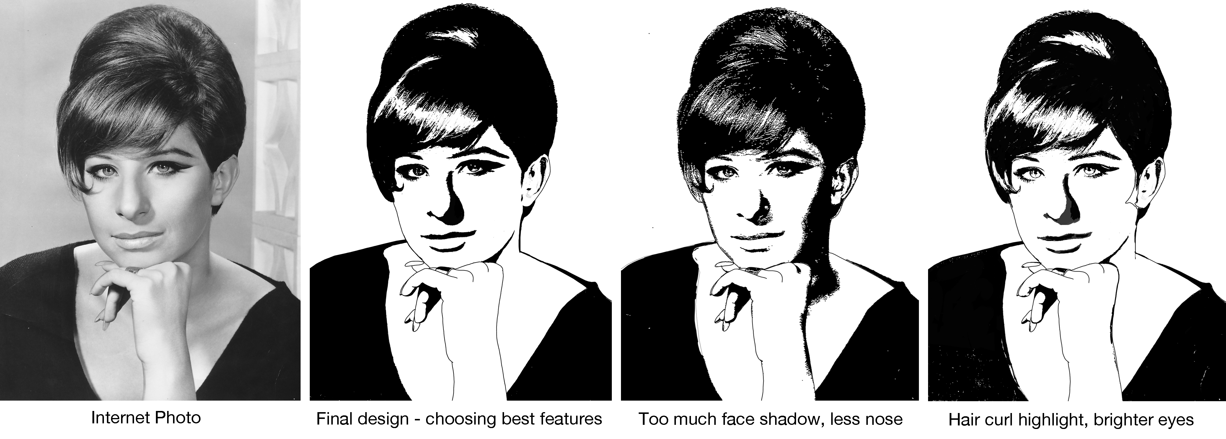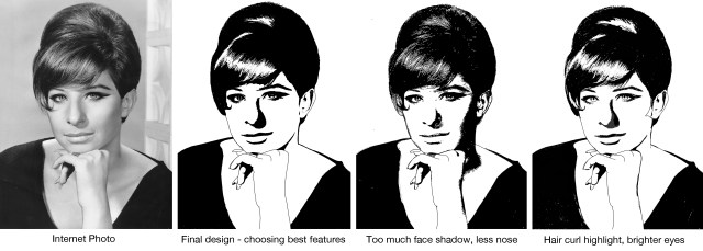 Although the CD cover inspired me, I looked for a more flattering image on the Internet. I found one and converted the photo into a black and white study. I diligently spent a lot of time on the preliminary work. There were many choices for the shadows on her face.