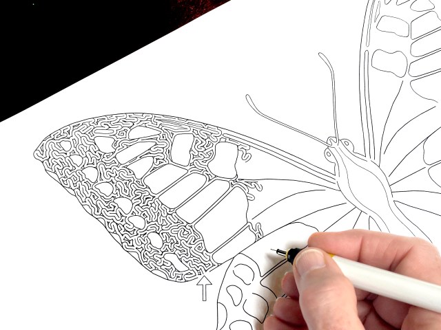 Drawing a smooth line drawing with a digital stylus requires skill and a steady hand. With practice, I quickly improved. There were many advantages, such as being able to flip my butterfly wing to make it symmetrical.