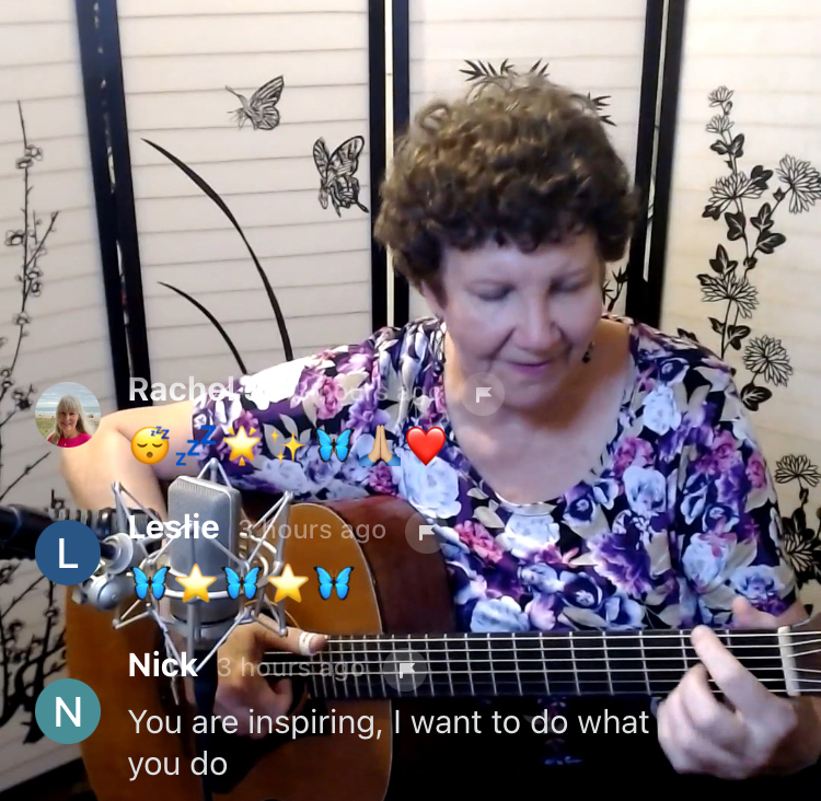 Every Sunday, I perform on the app Insight Timer. My one-hour live stream was the highlight of my week. There’s a link to my live sessions on the left side of my blog – it’s free to join.