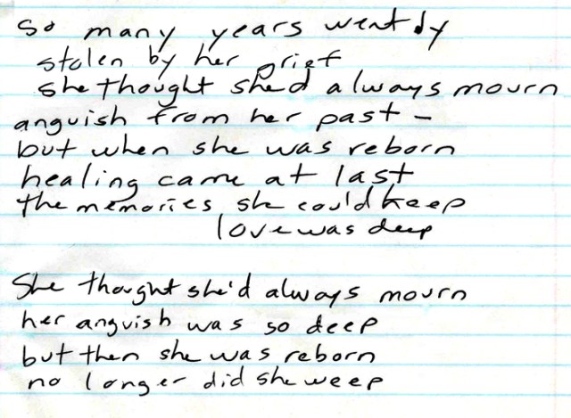 I was sad for so long; now my world was filled with song, with song