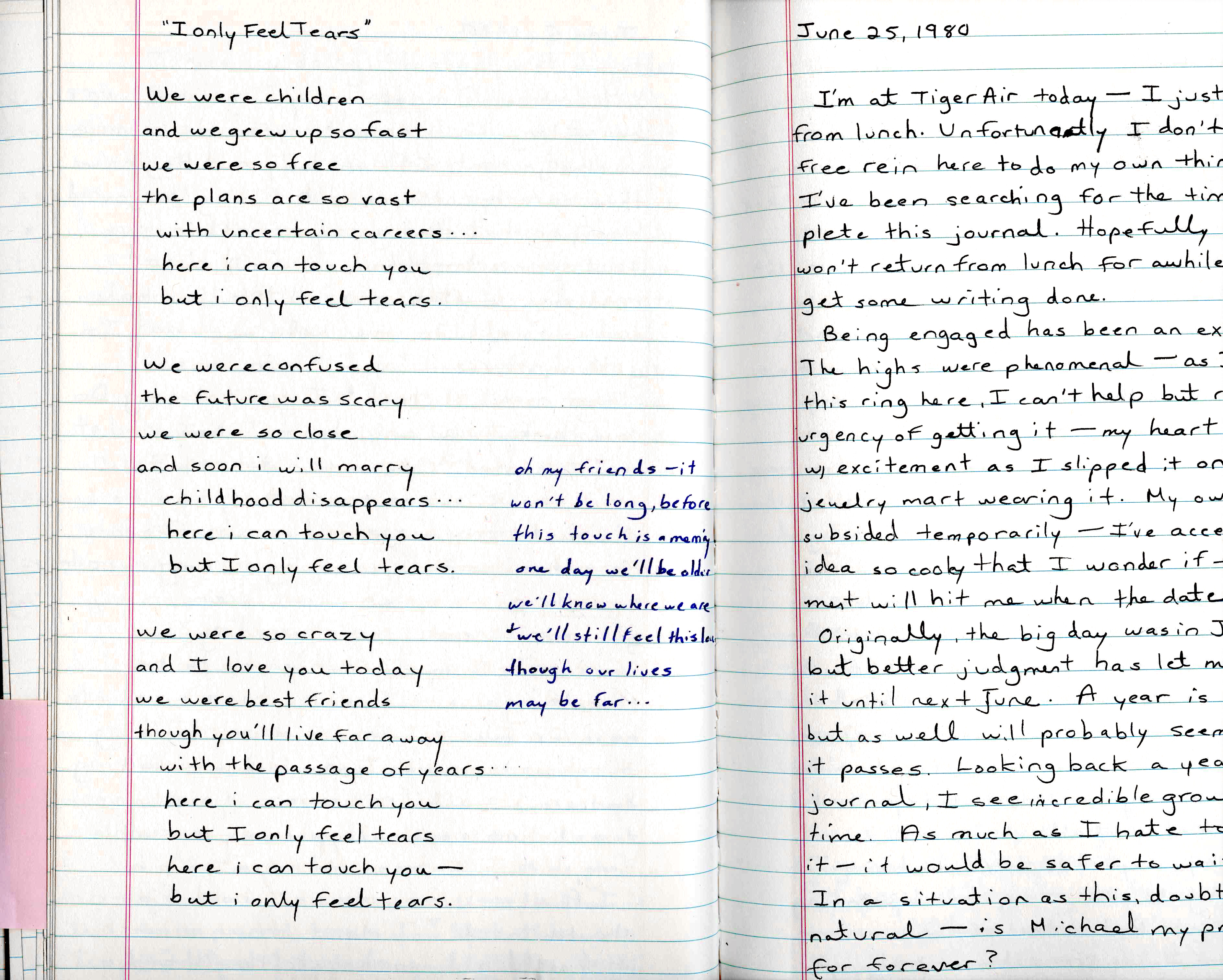 Diary page from 1980 with lyric development for my song, Only Tears.