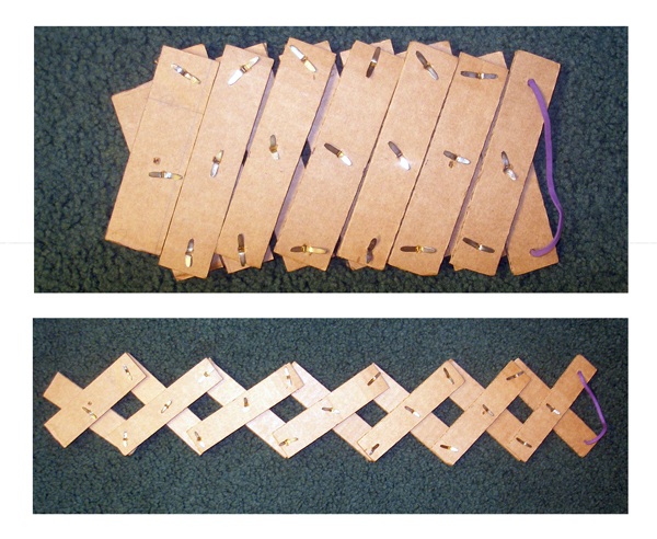 Two images of the same project; the bottom is opened up like an accordion. Reggie made it himself when he was six-years-old. He swiped my exacto knife when I wasn’t home.
