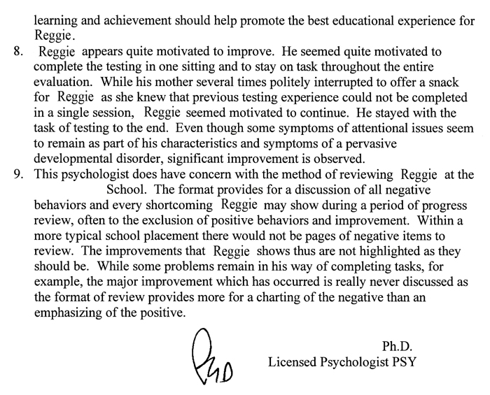 The opinions expressed my a psychologist evaluating my son during that same time period.