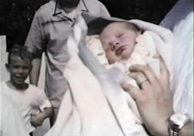 A still from an old, home movie. This was the day I was brought home from the hospital and my brothers saw me for the first time.