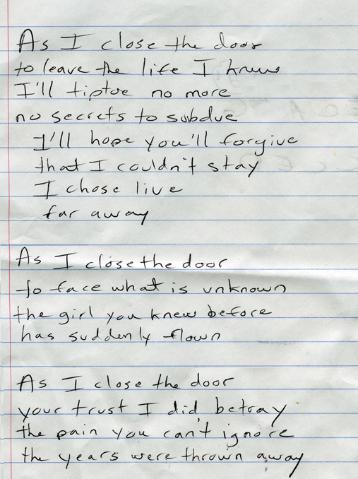 Above are lyrics to my song “The Door,” which was written a few months after “The Unknown.”
