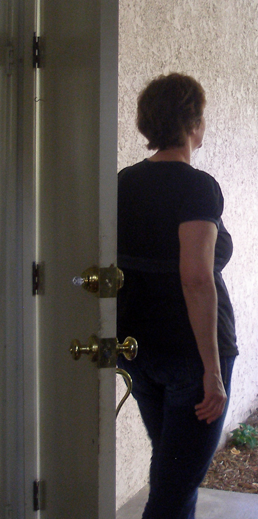 In this picture, I am standing looking out the door of my former house I lived in for almost twenty years.